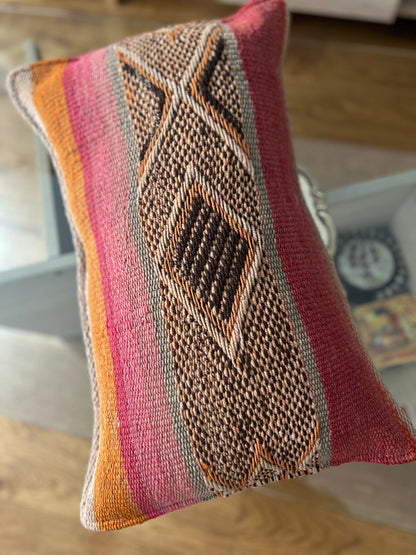 Nuestras fundas de cojín rectangulares de diseño mixto (lineal y dibujos triviales) son piezas únicas tejidas a mano con lana de oveja, provenientes de las comunidades altoandinas de Cusco. Cada funda es una obra de arte que combina la suavidad de las fibras naturales con técnicas tradicionales.
